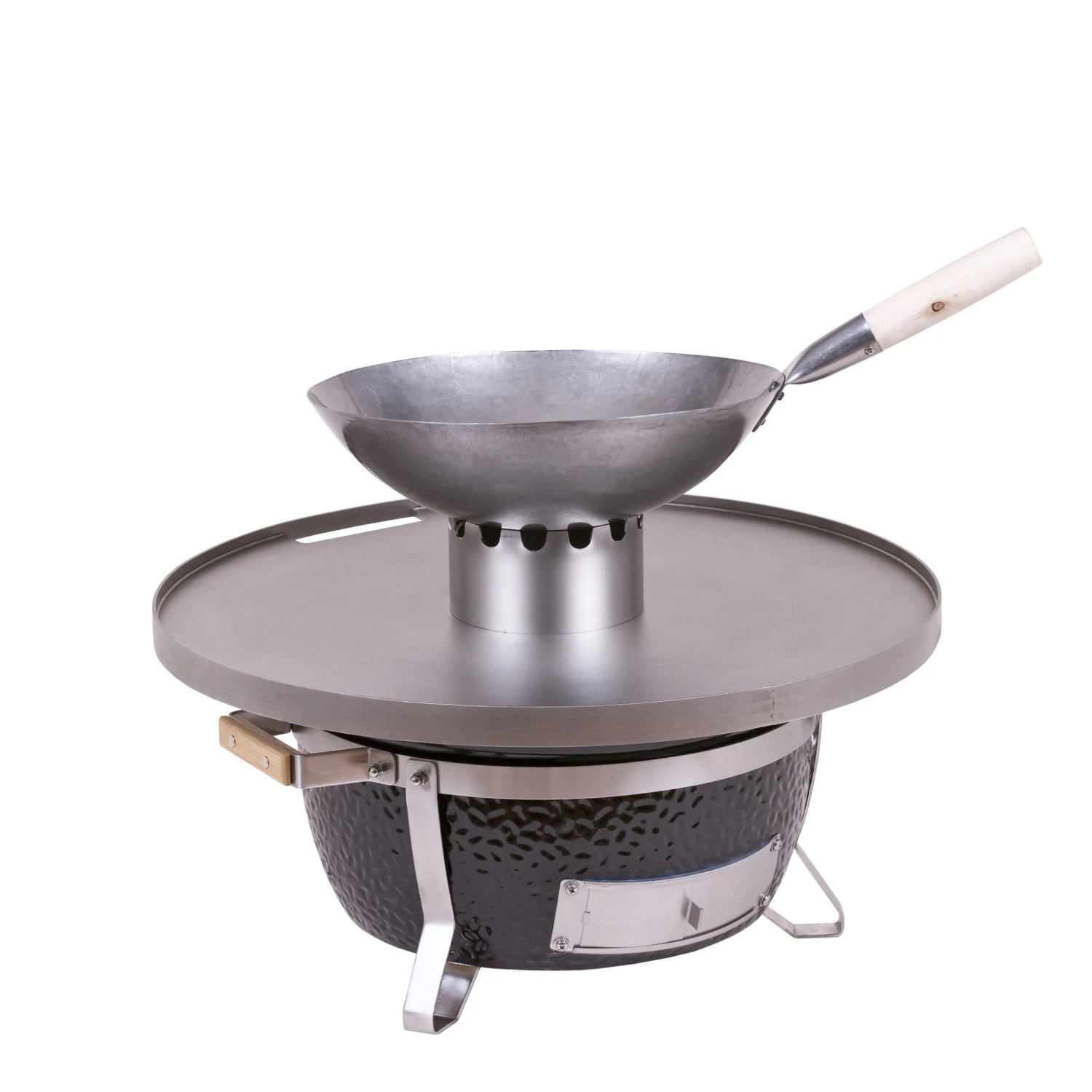 Wat extra bijzonder is, is dat het deksel kan worden verwijderd en je de Icon vervolgens kunt gebruiken als tafelgrill of er een stalen vuurplaat op kan plaatsen. Zodat je hem kan gebruiken als Plancha- of Teppan-achtige grill. Een lekbak kan worden bevestigd aan de vuurplaat voor het verzamelen van vet en sappen.