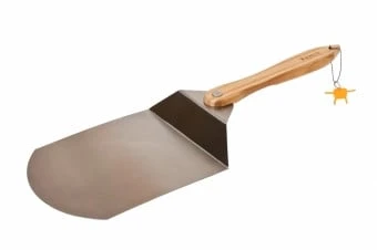 Met deze RVS pizzaschep kunnen pizza’s of flammenküchen eenvoudig op de pizzasteen worden gelegd of er vanaf worden gehaald. Voorzien van een draaibaar bamboe handgreep en een extra groot blad die eenvoudig te reinigen is.