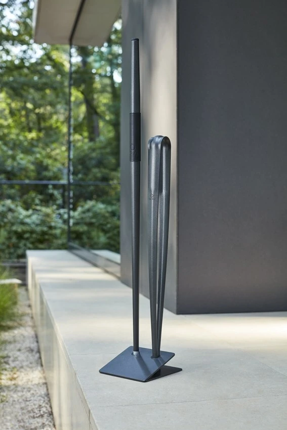 Met de tang/pook kan gemakkelijk nieuw hout aan het vuur worden toegevoegd wanneer dit reeds goed brandt.