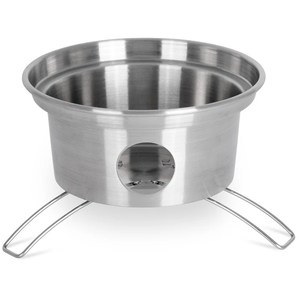 De extra schroefdeksel zorgt ervoor dat het water niet lekt. Dankzij de drie pootjes laat de vuurpot geen brandplekken na en staat hij stevig op elk oppervlak. De vuurschaal en de voeten kunnen worden opgeborgen in de onderste opening van de vuurpot voor transport en opslag. Dankzij de siliconen handgrepen is het eenvoudig om de pan van de warmtebron te halen. Met de robuuste roestvrijstalen vuurpot bespaar je opslagruimte voor gaspatronen of andere brandstof.
