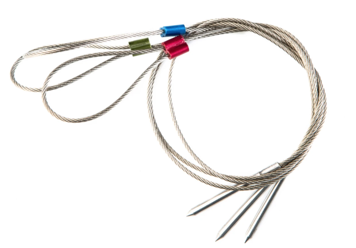 Bastard Flexibele Vleespennen Skewers zijn gemaakt van RVS en bestaan uit een roestvrijstalen pin en draad met een verzegelde lus. De set bestaat uit 3 flexibele vleespennen. De flexibele vleespennen kun jij in elke gewenste vorm op je rooster leggen, ideaal op een rond rooster. Doordat de vleespen een punt heeft, kun jij eenvoudig verschillende vlees/ vissoorten en groente aan de vleespen rijgen.